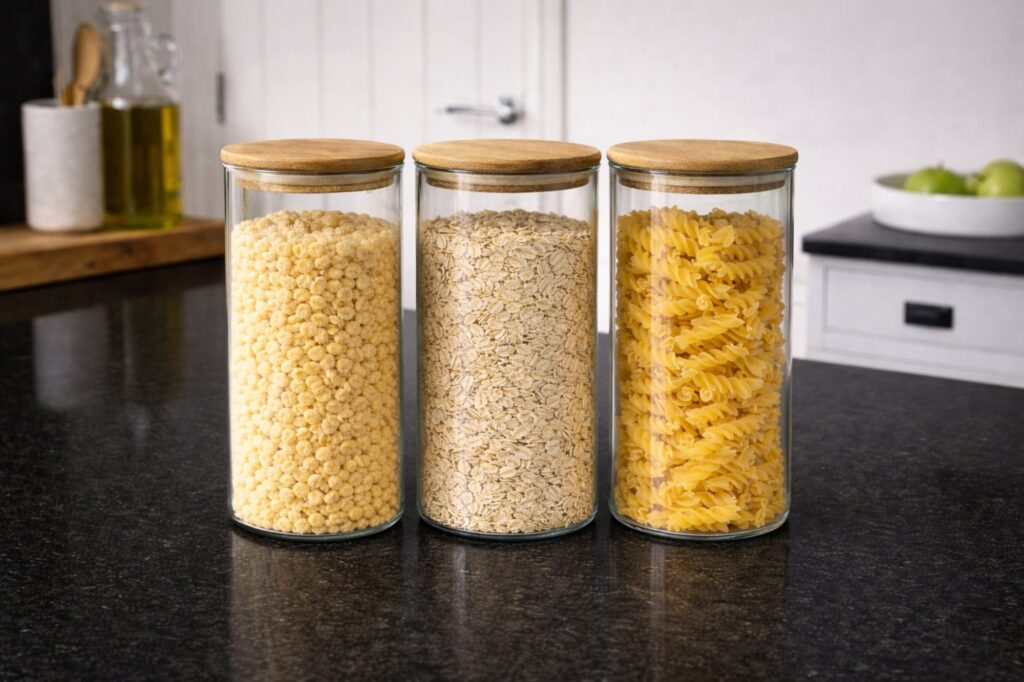 I bought these to make the kitchen and cupboards feel a bit more organised and they’re airtight so everything stays fresh.